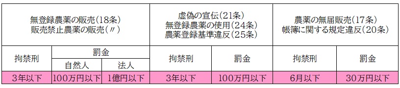 - 販売者が法律の規定に違反した場合には、農林水産大臣または都道府県知事は農薬の販売を制限したり禁止することができます。