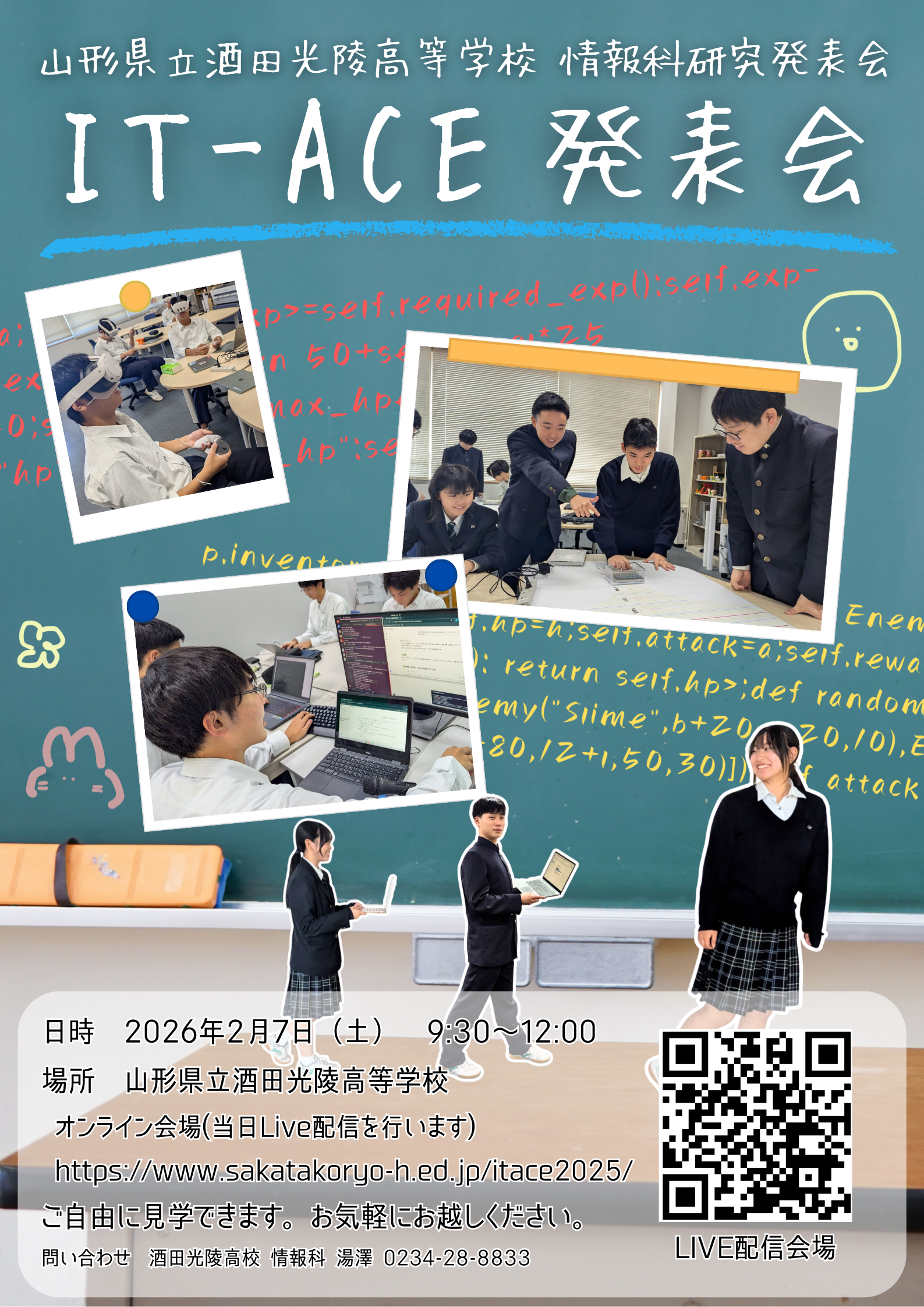 ホーム > 県政情報 > 情報公開・広報・広聴 > 広報 > 報道発表資料 > 2026年 > 1月 > 【山形県立酒田光陵高等学校】 IT-ACE発表会(情報科研究発表会)ならびに 文科省指定 生成AIパイロット校・DXハイスクール中間報告会の開催について